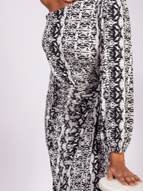 Pour le jeu d’asymétrie qui transforme une robe stretch simple en une pièce de caractère.