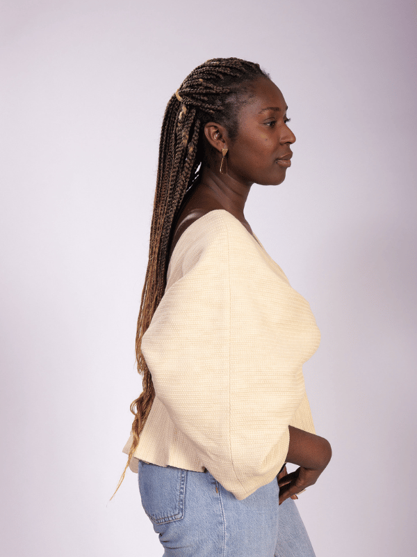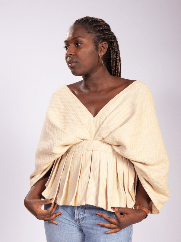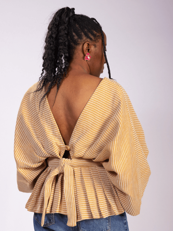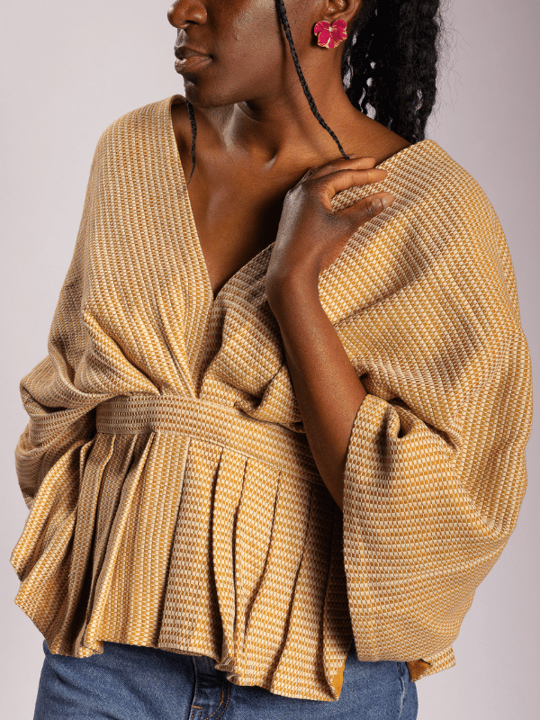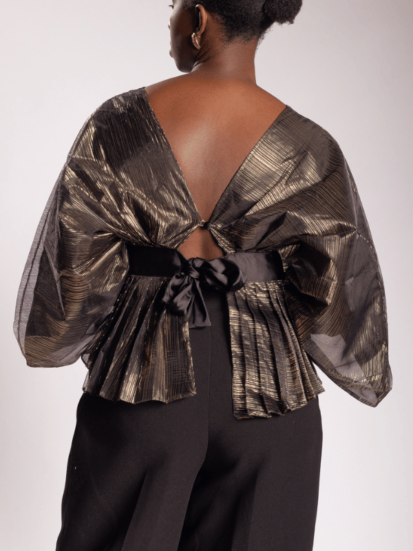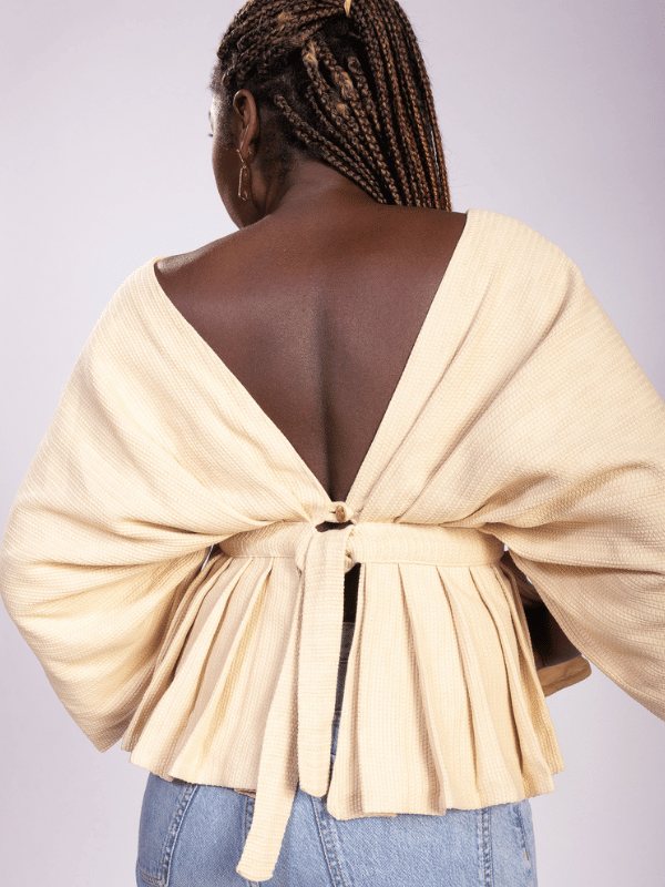 Manches amples, péplum plissé, c’est en se retournant que le Wantaï révèle son architecture.